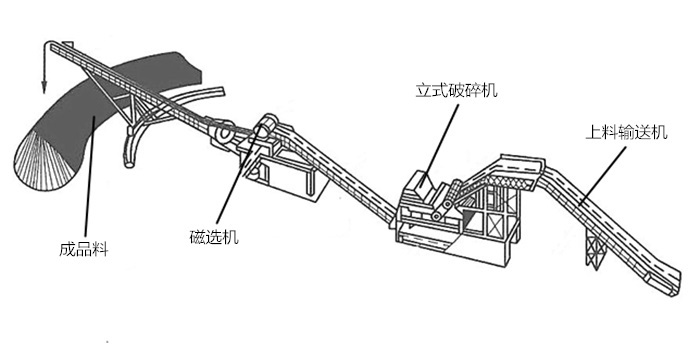 火燒鐵破碎機生產(chǎn)線由進料輸送機、立式破碎機、皮帶輸送機、磁選機、除塵、操作柜組成。從立式破碎機出來的破碎物,經(jīng)過皮帶輸送機、磁選機,把鐵金屬和雜質(zhì)分離開,并由各自輸送機送出歸堆。